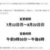 営業時間変更のお知らせ